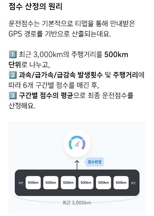 감점의 횟수가 동일하더라도 주행 거리가 짧을수록 감점 점수가 높다고 하니 참고 바랍니다.